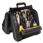 STANLEY® FATMAX® TORBA ZA ORGANIZACIJU ALATA. Dugotrajnost – kombinacija materijala pruža maksimalnu zaštitu od trošenja i habanja. Alat je organiziran u uspravnom položaju za jednostavan pristup alatu na radnom mjestu. Namjenski odjeljci za mehanički alat. Ojačano kućište – plastične stranice štite sadržaj. Ergonomska – odlikuje je udobna postavljena traka za rame i gumena ručka. Jednostavno se pretvori u radnu stanicu nakon otvaranja (A-struktura okvira). Alat nije uključen