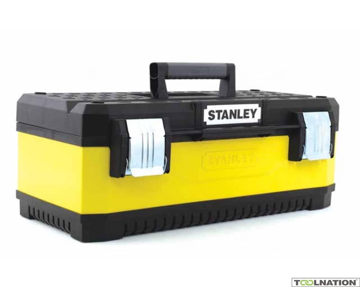STANLEY METALNA/PLASTIČNA KUTIJA ZA ALAT. Velike metalne nehrdžajuće brave sa lokotom čine alat sigurnim. Ergonomske ručke od dva materijala. Kombiniranje prednosti plastike sa snagom metala. V utori na gornjem poklopcu. Prenosiva ladica je oblikovana za nošenje alata i manjih dijelova, a istovremeno omogućava prostor za pohranu većeg alata. Jednostavna za nošenje jako teškog tereta imenzije 58,4 x 22,2 x 29,3 cm