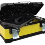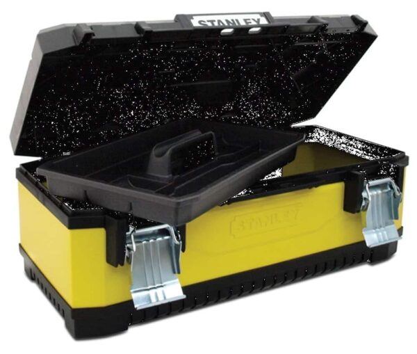 STANLEY METALNA/PLASTIČNA KUTIJA ZA ALAT. Velike metalne nehrdžajuće brave sa lokotom čine alat sigurnim. Ergonomske ručke od dva materijala. Kombiniranje prednosti plastike sa snagom metala. V utori na gornjem poklopcu. Prenosiva ladica je oblikovana za nošenje alata i manjih dijelova, a istovremeno omogućava prostor za pohranu većeg alata. Jednostavna za nošenje jako teškog tereta Dimenzije 49,7 x 22,2 x 29,3 cm