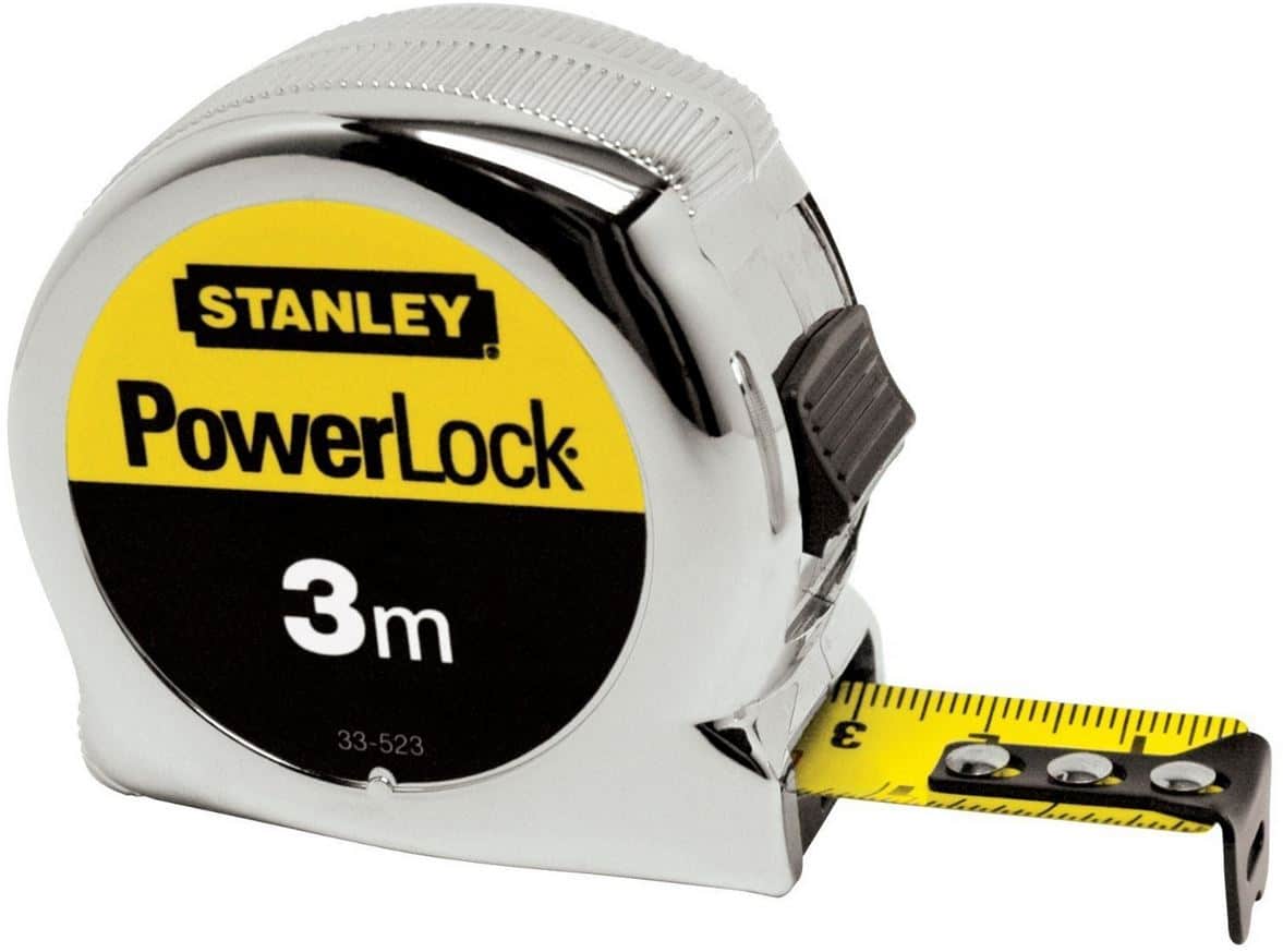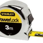 Stanley metar s metalnim kućištem PowerLock 3m – Visoko odporno kromirano metalno kućište – Mylar prevlaka, odporna na struganje – do 10x dugotrajniji od običnih traka – Tru zero (prava nula) mjerni jezičak se prilagođava za precizno nutarnje i vanjsko mjerenje – Mjerni jezičak sa tri točke je 40% jači od dvotočkastog – Blokada trake i samonamotajna opruga – Razred II – Kopča za pojas