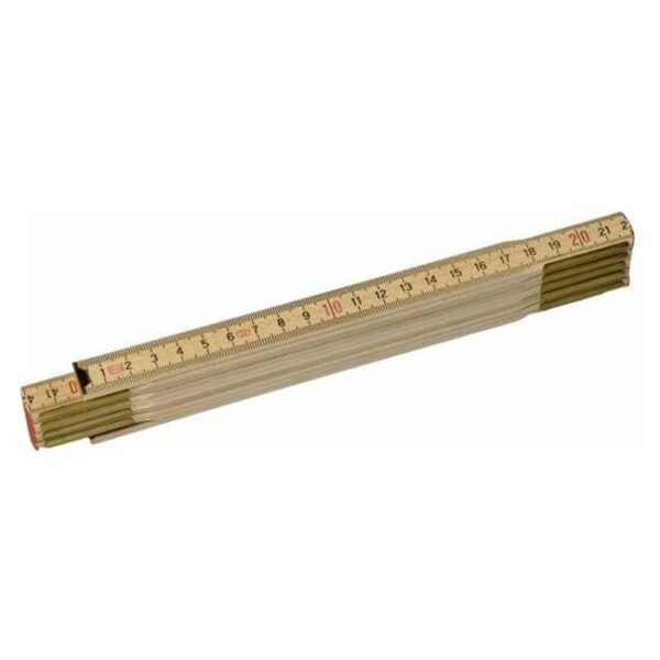 Višenamjenski korisni preklopni drveni metar dužine 2 m sa podcinčanim pregibnim mehanizmom za veću otpornost i bez vidljivih zakovica te mesingani obrub. Karakteristike: – viseslojni plastični premaz površine – otporen na vremenske uvjete – otporan protiv struganja i guljenja – zadnja strana je premazana UV zaščitom – duboku utisnute brojke i ljestvica, za dugotrajnost – razred III – FSC certifikat