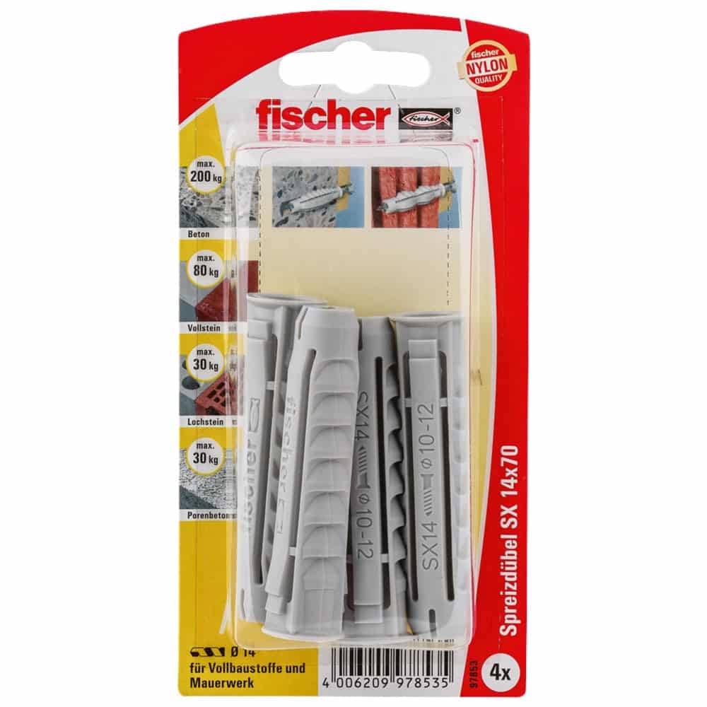 Der fischer Spreizdübel SX leitet durch die Vierfach-Spreizung die Kraft optimal in den Baustoff ein. Neben der typischen Spreizung garantiert das für die Herstellung verwendete hochwertige Nylon die sichere und dauerhafte Befestigung. Der am Dübelkopf angeformten Rand verhindert, dass der Dübel ins Bohrloch rutscht.