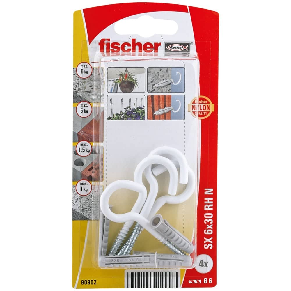 fischer Dübel SX 6x30 RH mit Rundhaken, nylonbeschichtet