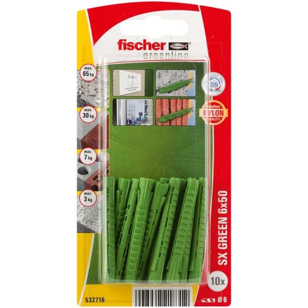 10 x Spreizdübel SX GREEN 6 x 50