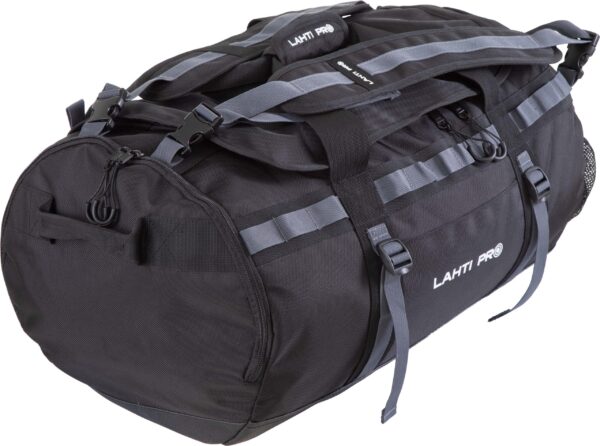 MATERIJAL: Poliester, PVC. Kapacitet: 53L. Funkcija ruksaka. Izrađen od materiala vodootpornog, izdržljivog i otpornog na oštećenja Oxford 1680D. Funkcionalni pretinac za cipele. Donji dio torbe je izrađen od materijala otpornog na oštečenje. Glavni pretinac zatvara se patentnim zatvaračem i može se učvrstiti lokotom. Bočni džep za stavljanje torbe na teleskopsku ručku kovčega. Dva mrežasta džepa. Unutarnji džep s kopčom za ključeve. Podesive naramenice. Bočne ručke za nošenje.