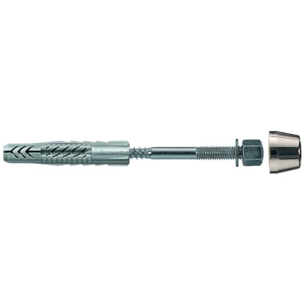 Komplett-Befestigungssatz für die einfache und schnelle Montage von Urinalen. Bestehend aus zwei Universaldübel UX 10×60, zwei Stockschrauben M8x110 gvz, zwei Kunststoff- und zwei Metallunterlegscheiben, zwei Hutmuttern und zwei verchromte Abdeckkappen. Der Universaldübel UX ohne Rand ist für die Vor- und Durchsteckmontage in allen Voll- und Lochbaustoffen geeignet.