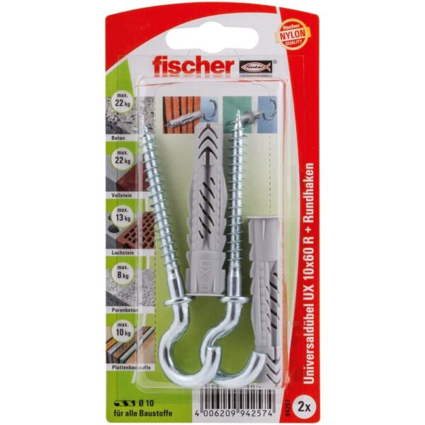 fischer Universaldübel UX 10 x 60 RH mit Rundhaken