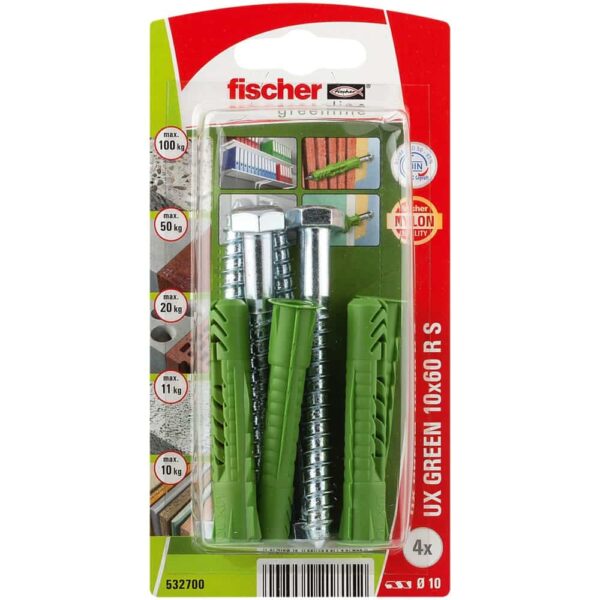 fischer Universaldübel UX Green 10 x 60 R S mit Rand und Schraube