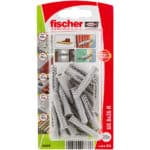 Der fischer Universaldübel ist der Allrounder aus hochwertigem Nylon. Der Dübel hält in Beton, aber auch in Porenbeton, in Mauerwerk und Gipskarton- und Gipsfaserplatten. In diesen Baustoffen verknotet der Dübel. Praktisch ist der angeformte Rand. Damit rutscht der Dübel beim Einstecken nicht ins Bohrloch. Mit dem fischer Universaldübel UX lassen sich beispielsweise Leuchten, Gardinenschienen, leichte Schränke und Sockelleisten befestigen.