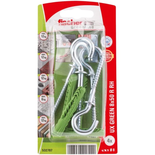 fischer Universaldübel UX Green 8 x 50 R RH mit Rand, Rundhaken