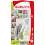 Der fischer Universaldübel ist der Allrounder aus hochwertigem Nylon. Der Dübel hält in Beton, aber auch in Porenbeton, Mauerwerk und in Gipskarton- und Gipsfaserplatten. In diesen Baustoffen verknotet der Dübel. Praktisch ist der angeformte Rand. Damit rutscht der Dübel beim Einstecken nicht ins Bohrloch. In der Verpackung sind bereits weiße, nylonbeschichtete Rundhaken mit dabei. Das spart Sucherei und garantiert, dass diese auch optimal zum Dübel passen. Mit dem fischer Universaldübel UX mit Rundhaken können zum Beispiel Leuchten und abgehängte Gegenständen befestigt werden.