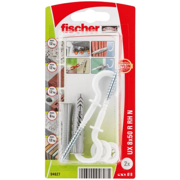 fischer Universaldübel UX 8 x 50 RH mit Rundhaken, nylonbeschichtet