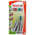 Der fischer Universaldübel UX ist ein Kunststoffdübel aus hochwertigem Nylon. Der fischer Universaldübel verspreizt in Vollbaustoffen und verknotet in Hohl- und Plattenbaustoffen für maximalen Halt. Damit ist der fischer UX immer die richtige Wahl – auch bei einem unbekannten Baustoff. In der Version ohne Rand ist der fischer Universaldübel UX für die Durchsteckmontage geeignet. Die mitgelieferten Schrauben sorgen für optimalen Halt.
