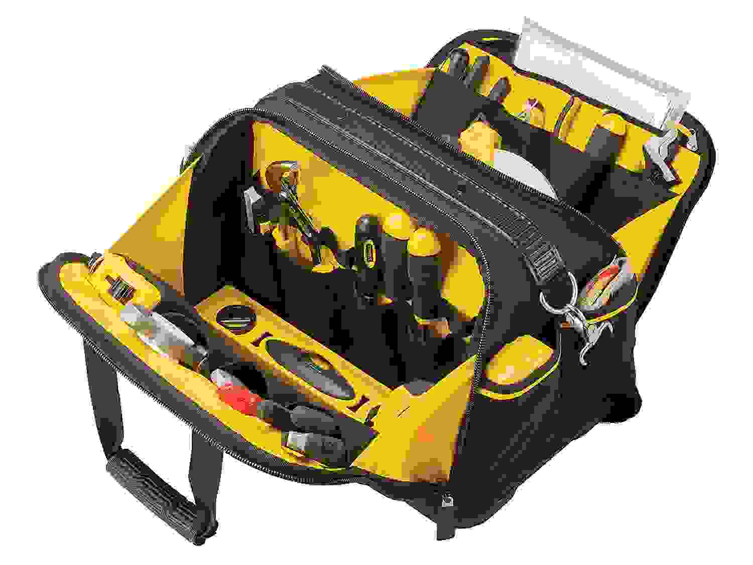 Posebno dizajnirana čvrsta struktura 2u1 širom se otvara za brz i jednostavan pristup alatima i dodacima. Dva duboka pretinca sadrže dovoljno prostora za odlaganje električnih alata. Puno unutarnjih i vanjskih džepova i petlja za vješalice za bolju organizaciju. S podstavljenom naramenicom za ugodnije nošenje. * alati nisu uključeni *