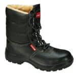 MATERIJAL: Gornji: koža. Podstava: pleteno krzno. Uložak: zamjenjiv Potplat: klizni dvodijelni poliuretan, otporan na dizelsko ulje, jaka potpetica za visoku stabilnost obuće SIGURNOSNI KAT: S3 SRC Cipele imaju čeličnu kapicu i čeličnu oblogu otpornu na probijanje, kao i antistatička svojstva. U petnom dijelu apsorbiraju energiju. Također imaju natkrivenu petu, ograničenu propusnost i apsorpciju vode. NORM: ISO 20345: 2011