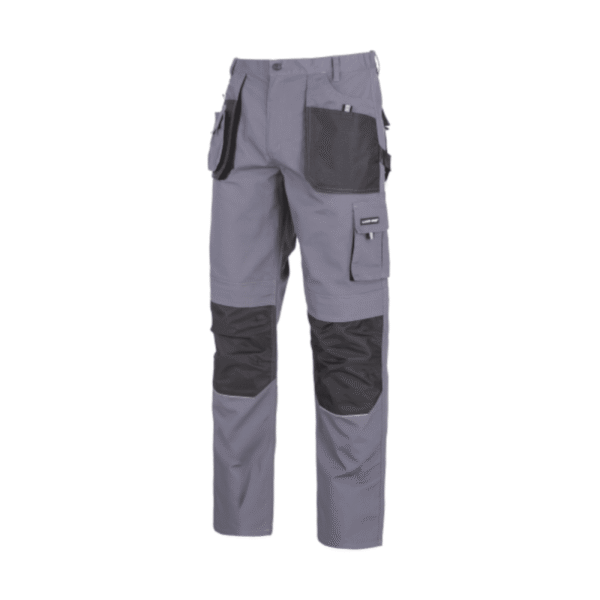 MATERIJAL: 35% pamuk, 65% poliester Izdržljiva CANVAS tkanina 9 džepova, od kojih 6 sa čičak trakom Džep za mobitel Trostruki šavovi Podesite propusnost pomoću gumba Rupa za privjesak Držač čekića Petlje za pse Reflektirajući elementi Džepovi za koljena i džepovi ojačani materijalom otpornim na habanje (poliester 600D) ID oznake STANDARD: EN ISO 13688